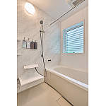白を基調とした清潔感のあるシステムバスに。在来浴室の段差と寒さを解消して、お父様も大満足。