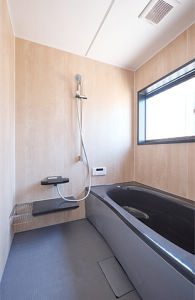 使う色味を絞り、すっきりとまとまりのあるシステムバスを採用。