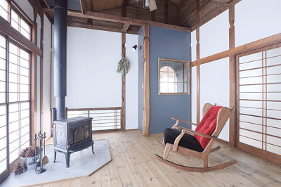 築38年の物件を大胆にリフォーム。高い天井や板張りの壁面、無垢のフローリング、薪ストーブなど、お施主様のこだわりを細部まで形に。ご家族や友人と豊かな時間を過ごすことができる、あたたかみのある空間となりました。