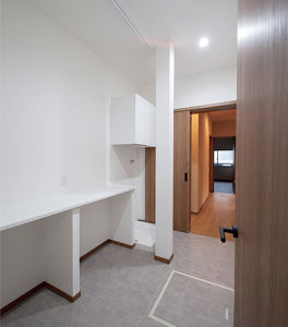 玄関横にあった部屋の一部を取り込んだ、明るく広いシューズクローク。ベビーカーやゴルフ用品まで、たっぷり入れられます。
