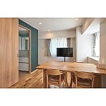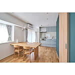 住まいの通風・採光をより良くするため、角住戸の利点を活かして窓のある4室をひとつながりの空間に。キッチンを中心に回遊できる機能的なプランとしながら、必要に応じてゆるやかに空間を仕切り「暮らす」「働く」を両立できる住まいになりました。