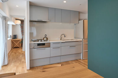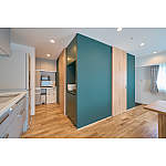 キッチンと洋室の間にあるサービスルームは、両側の引き戸を閉めれば在宅ワーク用の部屋に。インテリアカウンターを設置し収納も充実させています。