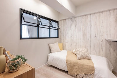 和室を2部屋に仕切り洋間に。室内窓を付けたことで、光と風を取り込めます。