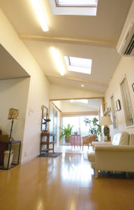天窓から射す光を浴びながら愛犬と戯れる午後は最高!