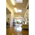 部屋中に光を届ける大きな天窓は、遮熱タイプのガラスで、夏の強い陽射しをカットする効果も。