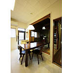 ダイニングが狭くて、子供や孫たちが遊びに来ても一緒に食事をする場所がなかったと言われるT様。ダイニングと和室の間にあった壁を撤去し、一体で使える広々したダイニングキッチンに。床と畳という床高の異なる二つの空間を、その段差を利用して、キッチン側からは椅子、和室側からは床に座って使えるよう特注でテーブルを作りました。ロールスクリーンで2つの空間を仕切れるので、急な来客時にも安心。子供や孫が来たときには、ロールスクリーンを上げると6人がゆったり座れます。