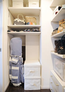 結婚にあたり新居の収納を増やしたいとお考えだったK様。二人のライフスタイルに合わせ、クローゼットと押入れ、和室の一部を大収納のウォークインクローゼットに。パーツを組み合わせられる「アイ・シェルフ」で空間を最大限に活用し、バッグや小物、ネクタイからロングコートまでを整然と収納しています。「取り出す」のも「しまう」のも、毎日楽しくなりました。