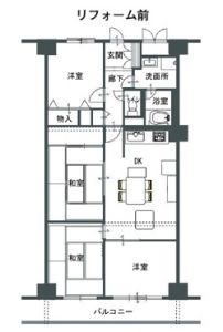細かく仕切られた間仕切壁を取り払い部屋の奥まで光が差し込む明るいLDK インテリアや住宅設備には木の質感を用いることで和のイメージを意識したデザインに仕上げました。