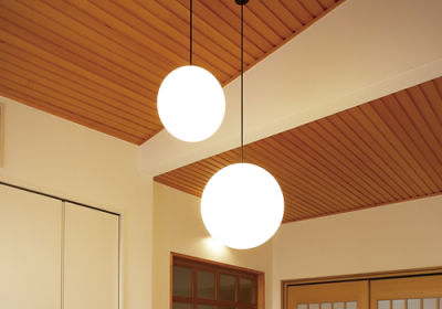 ゆったりとしたフォルムのペンダントが、落ち着いた和の空間を演出しています