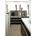 共有ゾーンのキッチンは、物であふれていたため収納スペースを倍増。3方向に出入口を設け、北側の引き戸を開けるとリビングからご主人の個室まで風が通り抜けます。キッチンに程近い納戸には大容量の食器棚も造作し、たくさんの食器もすっきり。夫婦ふたりの時間をゆったり過ごせる快適な空間になりました。