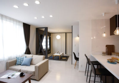台所・居間・和室の壁を撤去して生まれたL字型ののびやかな空間でくつろぐひととき