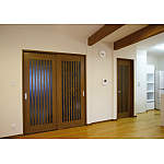 ぶつかってもガラスが割れにくいよう、縦格子入りの引戸とドアを採用