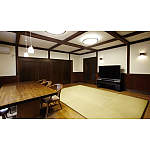 大正ロマンを感じさせる和モダンのリビングダイニングにこだわられたA様。天井の出っ張りをなくし、フラットにして梁を出すことで、「和」を演出しています。壁や天井の木部を濃い色に統一し、部屋全体の雰囲気をシックにまとめました。また、改装前に使用していた思い出の建具を腰板に再利用。少し赤みのある腰板は、部屋全体の色のバランスを整えてくれています。まるで老舗旅館のような部屋では、流れる時間もゆったり。A様と愛犬も気持ちよく寛げているようです。
