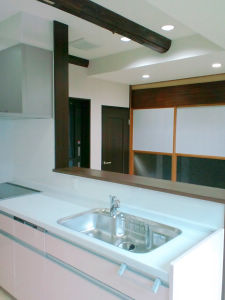 キッチンはリビングステーションLクラス。対面式にし、家族とのコミュニケーションを確保。ご希望だった大容量の収納庫を造作。