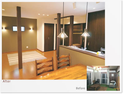 昭和時代を象徴する台所と応接間だった部屋をLDKに改修しました。