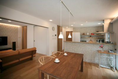 独立したキッチンを縮小しパントリーに。使い勝手も良くなり広々としたLDKになりました。