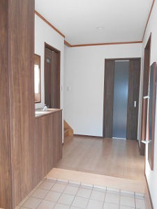 内装ドアや玄関収納が変わった事で、統一感が生まれモダンな雰囲気になった。