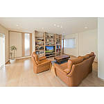そこで、鉄骨造の家の1階部分、駐車スペースを改装し、新たな「集いのリビング」を提案。15.7帖というゆとりの広さで、家族が集まって楽しい団らんのひと時を過ごせるようになりました。またリビングの壁一面には、奥様の念願だったという収納棚(アーキスペック収納)をデザイン。思い出の品や写真などを飾れる「見せる収納」で、お部屋もスッキリとした印象に。その品々を眺めながら家族の会話にも花が咲き、「今までにない団らんの部屋になりました」と嬉しそうに語るM様です。