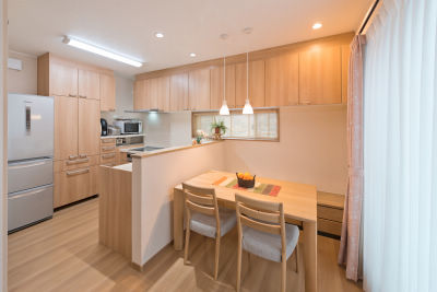 「将来的に安心して住める家にしたい」と建替を行ったT・K様。そこで、もっとも長い時間を過ごすLDKや水廻りを1階から2階へと大胆に間取り変更。陽当たりも抜群で、風通りもよい住まいに生まれ変わりました。「最初は2階にリビングというのは想像できませんでした」と語るT・K様ですが「住んでみるととても快適。この間取りにして正解でした」と、満面の笑み。足元に設置した床暖房のおかげで、冬場でもぽかぽかと暖かく、1年を通じて居心地のよい空間です。