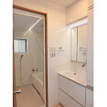 ウォールユニットの傷みが気になるところでしたが、洗面化粧台のウツクシーズ750㎜に入れ替えをしてすっきり綺麗な洗面台に大変身。天井には凹凸感をなくすため、ダウンライトを埋め込みました。タイルだった壁もクロスに貼り替え、イメージが一新しました。