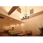 大空間の吹拔には間接照明で心地良いリビングルームを演出。