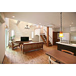 家族がゆったり過ごせるLDKにわんちゃんネコちゃんスペースを設け、リビング側を吹拔にする事で、より空間を大きく感じられるようにしました。