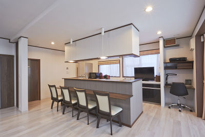 設備の老朽化と収納不足から、リフォームされたS様。LDKにはお孫さんからのプレゼントや思い出の写真が所狭しと並び、モノが溢れて広さが活かせていなかったため、ディスプレイを兼ねた「キュビオス」やカップボード、その横に設けたPCスペースなど、収納スペースを豊富に確保。週末に遊びに来るお孫さんが元気に走り回れる広さを取り戻しました。すっきりと整理整頓されて家族が集まれるわが家に、S様は大喜びのご様子です。