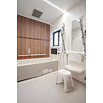F様のお悩みの種は、高齢のお母様の浴室への動線でした。別棟にお住まいのお母様がF様宅の浴室を使うためには一度外を通らねばならず、冬場は体が冷えてしまいお困りだったそう。そこで住戸と住戸をつなぐ渡り廊下を新設。あらゆる動線上に手すりを設け、外に出ることなくお一人でも安心して移動可能に。冬場は冷え込む浴室も、浴室暖房や床暖房、保温浴槽のおかげでいつ入浴しても暖かく快適。安心してリラックスできるバリアフリーな使い心地になりました。