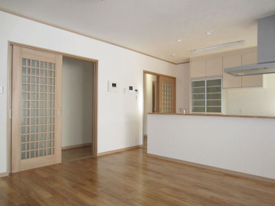 明るい色の引違戸にして部屋全体が広く感じられます。