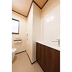 寒さの気になる浴室はオフローラ1621を採用し、天井埋め込み暖房機、酸素美泡湯を搭載。洗面には1200幅のウツクシーズ、パノラマスライドタイプを採用し、450幅のトールキャビネットを合わせて3つと洗濯機上部にユニットを設置し収納不足を解消。寒さ対策には壁付暖房機で対応。トイレはお掃除の楽なアラウーノとストール便器を採用。