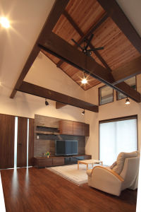 老朽化に伴い冬の寒さが厳しい、また収納スペースが少なく来客の度に片付けるのが負担であることなどから、築35年の平屋住宅の建替を決意されたI様。床暖房や高断熱工法を取り入れたことで、冬の寒さ対策は万全。吹き抜けを設けたリビングは、平屋にはなかった開放的な居心地に。新設した2 階部分には、ウォールラックや読書スペースなど、趣味を満喫できる空間を備えました。