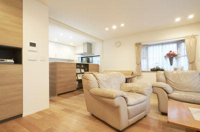 お子様世帯や近所に暮らす親戚の方が集まることも多く、リビングがやや手狭に感じていたO様。「家族が自然に立ち寄れるゆったりとした家にしたい」とリフォームを決意しました。広々としたLDKを実現するため、洗面室のスペースを拡張しキッチンは壁付けから対面オープン式へ変更。遮るものがない大空間のLDKは、お孫さん達が走り回っても十分な広さとなりました。