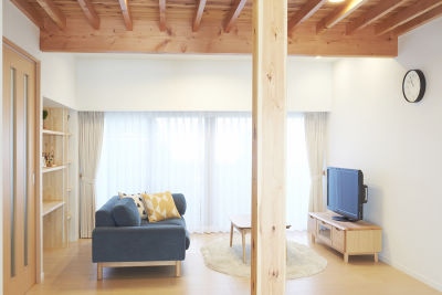 大切なお家をお祖母様から受け継いだというK様。4.5帖の孤立したキッチンが悩みの種でした。動かせない既存の壁や柱は活かし、キッチンはLDと一体感のあるオープンな対面式に変更。天井裏の梁を活かして吹抜としたLDには、大胆にロフトを設置。お子様にも楽しい、遊び心のある開放的な住まいになりました。