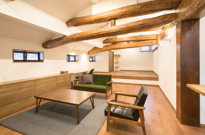築後80年が経ち、建替かリフォームか悩まれたというT 様。しかし、代々受け継がれた大切なお家ということで、既存のイメージを残したままリフォームすることに。食堂兼台所として使っていたスペースは、玄関ホールまで広げて開放的な一体空間に。インテリアも白で統一され、広がりを感じさせます。元々あった和室を活かした畳コーナーなど、かつての趣が随所に活きた住まいとなりました。