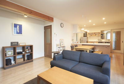 ご夫婦で絵画コレクションが趣味のU様。耐震補強をきっかけに、長年ご夫婦で思い描いてきた理想の住まいを叶えたいと全面リフォームされました。既存の和室を解体して拡張されたLDKには、ダウンライトと化粧梁が演出するギャラリースペースが。その他にも玄関のピクチャーレールやカウンターなど、ご夫婦がコレクションしている版画や雑貨などを自由気ままにディスプレイして空間を演出できる、ギャラリーのような住まいになりました。
