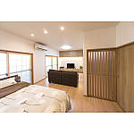 奥様の定年退職をきっかけに、「これからの時間を二人でゆっくり過ごせる空間をプレゼントしたい」との想いでリフォームを決めたK様。暮らしやすさを考えて、これまでは2階にあった寝室を1階に移動し、1階で生活のすべてが完結する間取りに変更なさいました。物置として使われている和室は間仕切りを撤去し、フローリング貼りの寝室に。壁面収納を兼ねたTVボードは、間接照明によるやわらかなあかりが落ち着きある空間を演出してくれます。セカンドリビングのような居心地と、ご夫婦がゆったりお休みになれる寝室スペースが一体となった、くつろぎの居場所が生まれました。