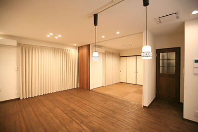 仕切り戸を開放すれば、和室・LDKが一体化し、家族がゆったり過ごせる団らんスペースが出現。