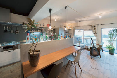 3室をワンルームにして広々としたLDKに。こだわりはBARのようなカウンターキッチン。