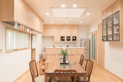 キッチンからみんなが見渡せ、明るく楽しい毎日を過ごしています。