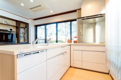長年ひとつのキッチンを二世帯で使われていた奥様のために、「感謝の気持ちを込めてお気に入りの空間を」と、ご主人からプレゼントされたリフォーム。使われていなかった2階の書斎をダイニングキッチンに変更しました。木目調のあたたかみのある空間にL字型のキッチンを設け、スムーズな家事動線も確保。「とてもお料理がしやすい。自分のお城ができたようで嬉しいです」と奥様も大満足。また、掃除がしやすいようにと、洗面などの水まわりも見直しました。