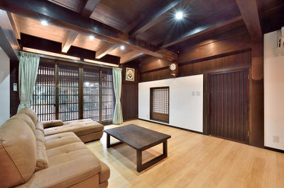 古民家の雰囲気を損なわないよう柱や梁などできるだけ再利用するとともに、ガラス瓦で採光を取り、床を無垢材にするなどし、明るさを演出することを心がけました。
