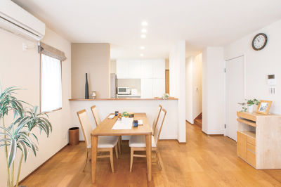 オール電化で安心。床暖房を設置し、高性能断熱材を用いて、あたたかいリビングを実現。