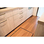 奥様いわく「キッチンはクッションフロア、リビングはカーペットだったのがずっと嫌で、フローリングにしたかったの」と、床の上張りとキッチンの向きを変更。