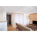 4LDKを3LDKの間取りに変更 リビングは無垢材を貼り和室にはクロスで部屋をアクセントにしました 設備を入れ替えマンションが蘇りました