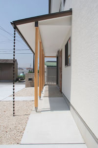 同じ敷地で暮らす3名、お互いのプライバシーは確保しようと考えそれぞれの空間を設けました。特にお母さまが快適に暮らせるように配慮工夫しました。人の導線は建物の中だけではなく、敷地の入り口からと考え、車いすでも増築部分から外出がしやすいように、スロープや屋根付きスペースにこだわりました。