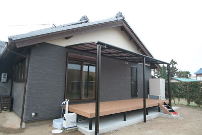 屋根付ウッドデッキのおかげでお洗濯物も安心して干せます 部屋からの段差も少ないので出入りしやすいです