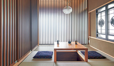 玄関、リビング、廊下に接した小上がりの和室は、三方を間仕切り戸にして開放感のあるフレキシブルな空間に。掘りごたつを囲んで、ゆったりと時間が流れます。