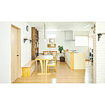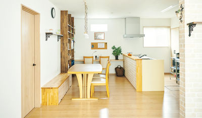 中古の店舗併用住宅をリフォームし、家族3人の個室を確保。ご近所に住むI様のお母様も、よく遊びに来るようになりました。愛犬が自由に歩けるよう、床材は傷がつきにくい素材をチョイス。要所に取り入れたフレンチスタイルが、明るいLDKのアクセントです。