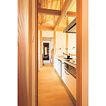 玄関からキッチン、奥の洗面室、浴室まで一直線につながり、家事動線にもひと工夫。