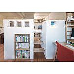 収納スペースの確保のためにご主人が考えられたのは、ロフトベッドでした。そこで、子供部屋と書斎をひとつにし、ご夫婦の寝室にもなる大きなロフトベッドをつくり上げました。たっぷりの収納スペースを確保しただけでなく、「床で寝るよりもあたたかく、視線も高くなって今まで見ていた窓の景色も変わり、新鮮な気分です」と奥様も快適性に満足されています。